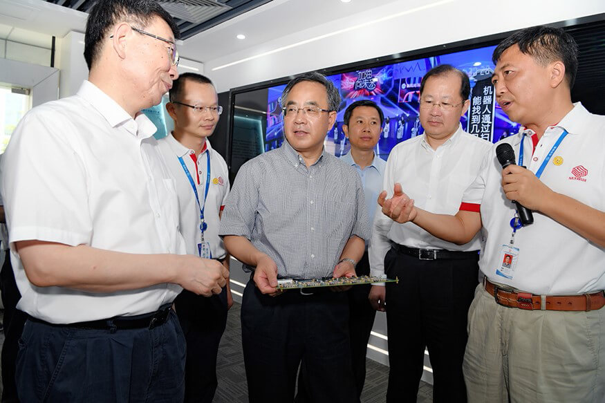 2017年7月29日上午,中央政治局委员、广东省委书记胡春华在广东省委副书记、广州市委书记任学峰、广东省委秘书长江凌、副省长黄宁生等领导陪同下赴广州市企业调研,365英国上市公司(集团)智能科技有限公司官网作为被调研企业之一,公司董事长孙超向胡春华书记介绍了公司的发展历程,研发中心总经理朱勇杰介绍了公司自主研发的专用高性能计算平台这一核心技术的研发历程、国内外的行业地位、发展前景等。
